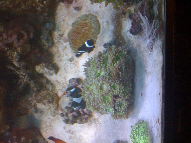 i am a little disappointed in the color of the 250w XM bulb, i bet you cant tell which one it is, can you ?? yup its the one that doesn't match !! but i am searching e-bay right now for another coralife reeflux 250 !! i know i need to move a few corals from direct halide lights, i just haven't had the time yet. as ALWAYS i hit a snag in switching the VHO's, now of the 3 that are going back on the 55gal. only 1 is working and i see NO problems in the configuration. hmmmm. i better get to thinking cuz the wife wants some LPS's !!